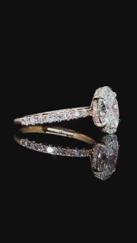Diamond Engagement Ring Oval 14K Gold 3.02 TCW Hidden Halo